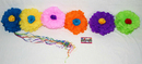 This flower strands are used for decorational purposes. You can string them together to make a larger strand or twist them to make them into large or small wreaths. They have six 7.5in color assorted flowers per strand and have multi colored streamers in one end.