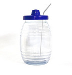 Vitrolera made of durable and break resistance plastic. Great for parties for fruit drinks or mixed drinks. They come with different solid lids in these colors: Red, Pink, Green, Light Blue, Purple, Yellow and Orange and simple plastic straw. Inner Pack of 6. Master pack of 30.