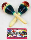 Hard wooden pair of maracas. Pebbles inside to make sound. Approximate 5in long.